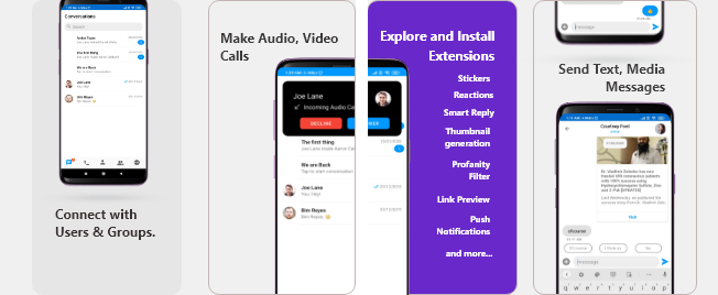 The UI Kit’s customizable UI components simplify the process of integrating text chat and voice/video calling features to your website or mobile application in a few minutes.