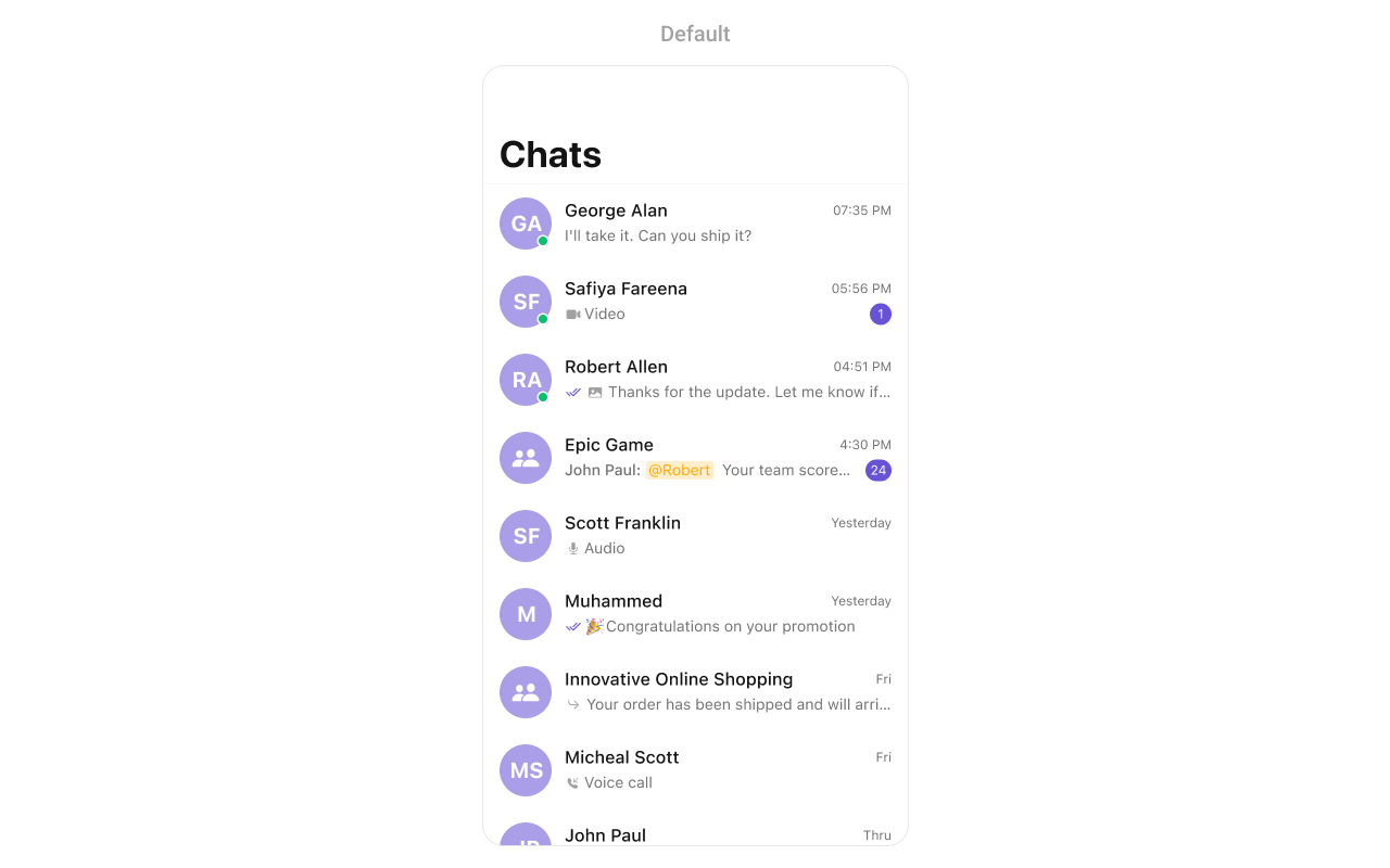 | Unread badge | Style | badgeStyle | BadgeStyle() with custom colors |