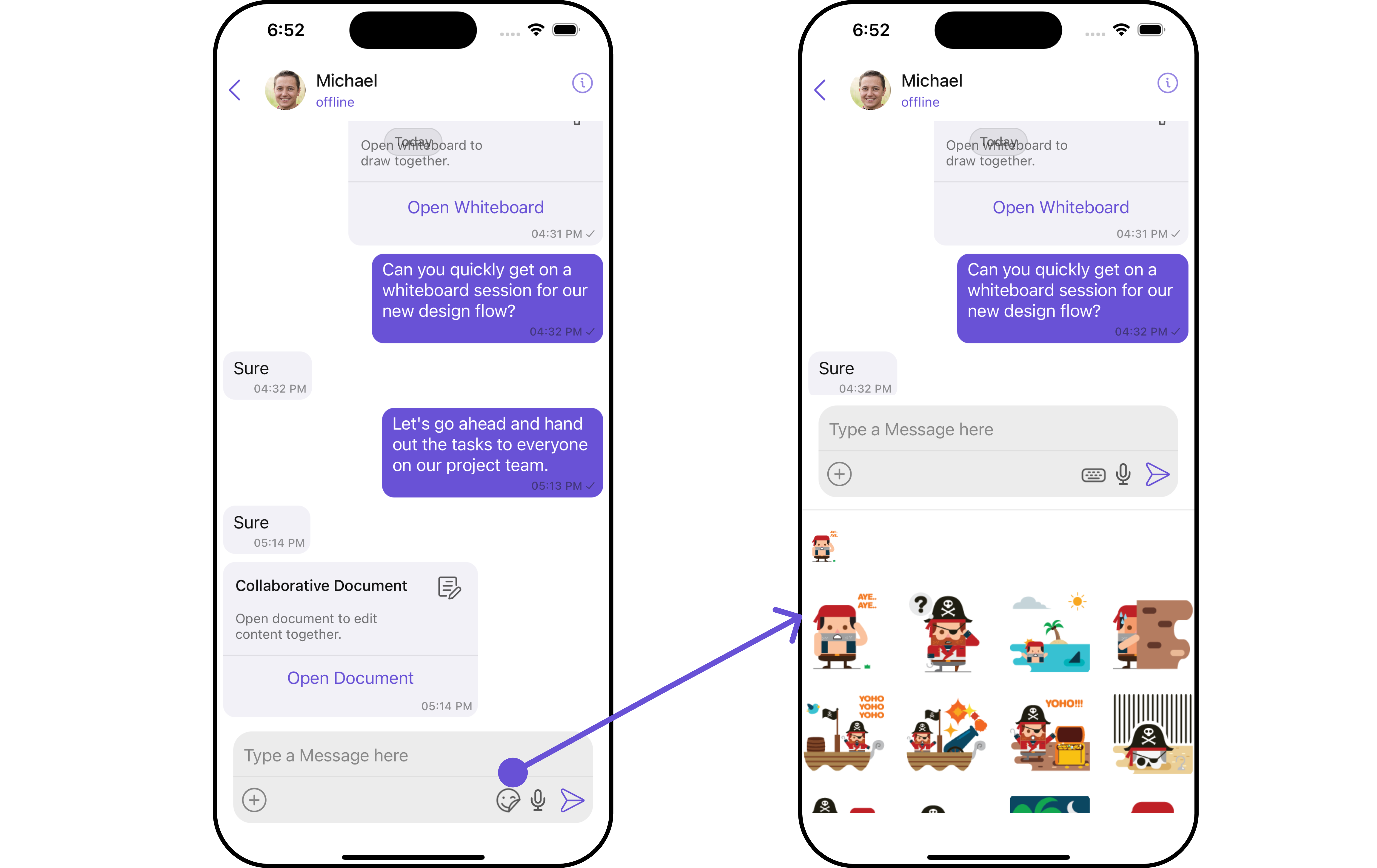 The Stickers extension allows users to express their emotions more creatively. It adds a much-needed fun element to the chat by allowing users to send various pre-designed stickers. For a comprehensive understanding and guide on implementing and using the Sticker Extension, refer to our specific guide on the Sticker Extension. Once you have successfully activated the Sticker Extension from your CometChat Dashboard, the feature will automatically be incorporated into the Message Composer component of UI Kits.