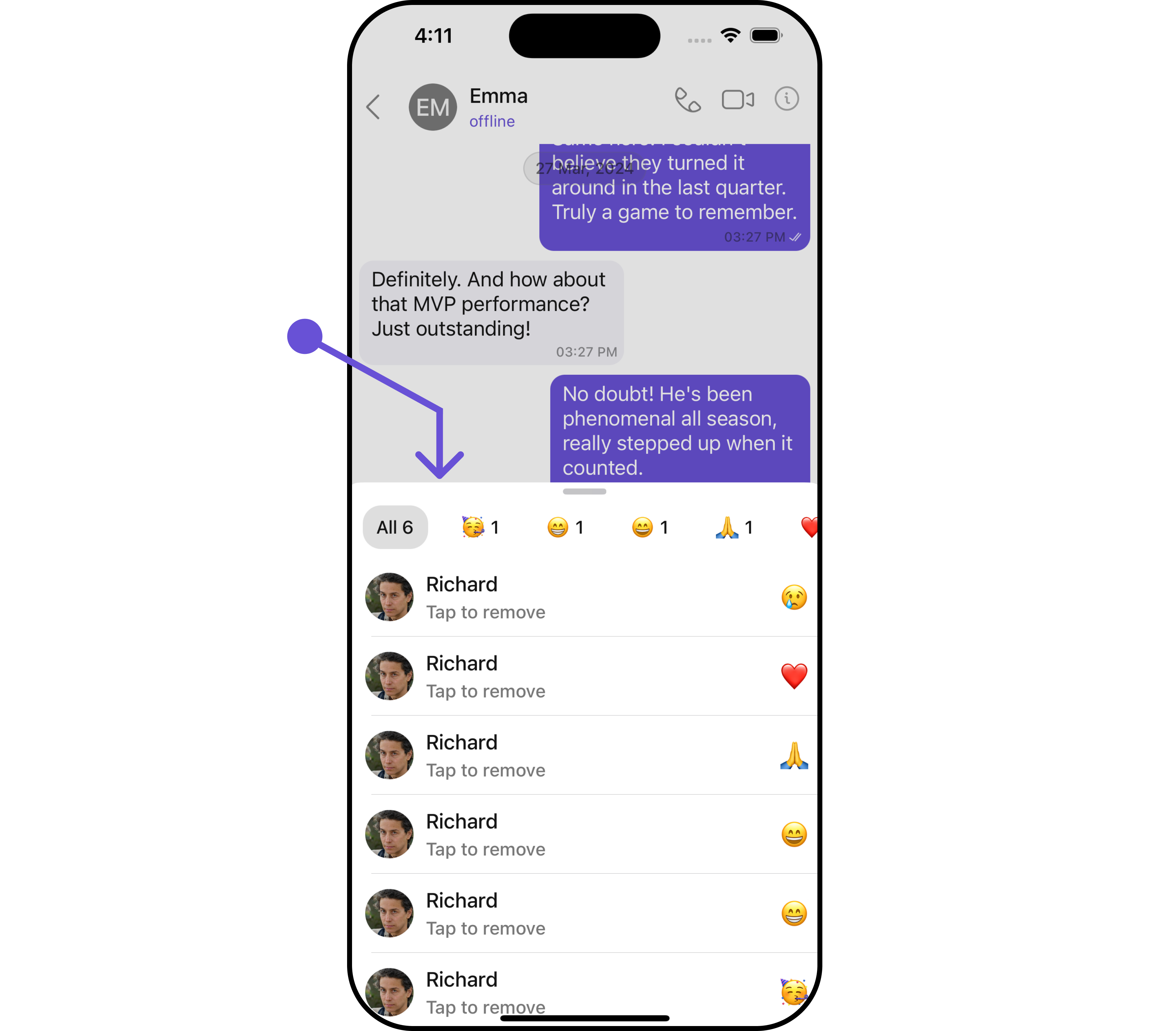 .set (onTappedToRemoveClicked:{ messageReaction, messageObject in