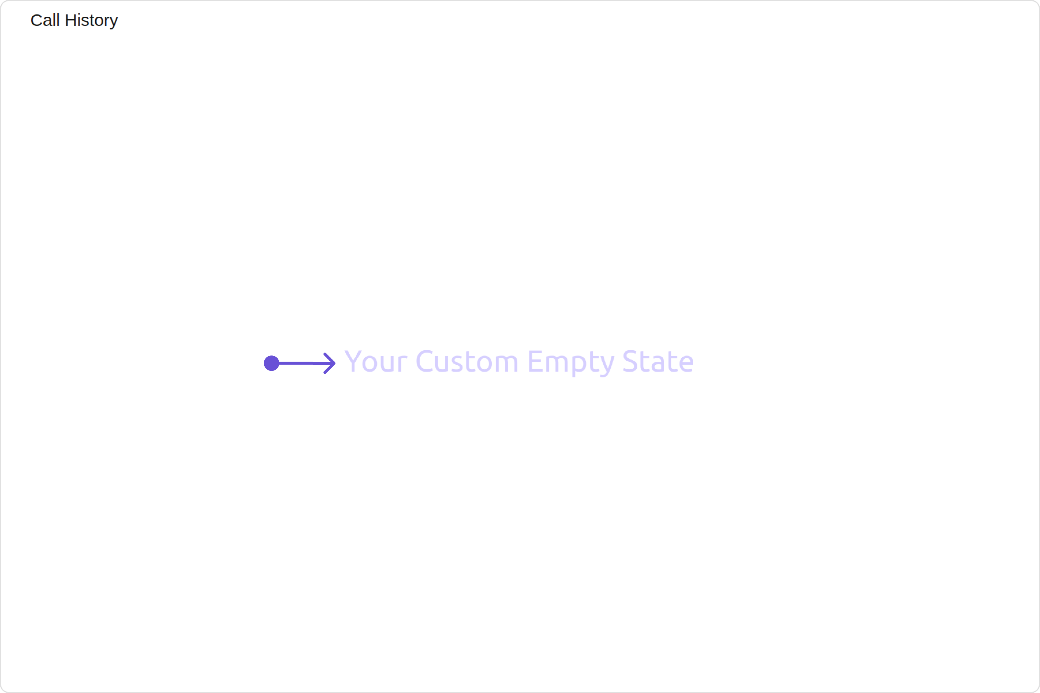These are a set of small functional customizations that allow you to fine-tune the overall experience of the component. With these, you can change text, set custom icons, and toggle the visibility of UI elements. Here is a code snippet demonstrating how you can customize the functionality of theCall Log History component.