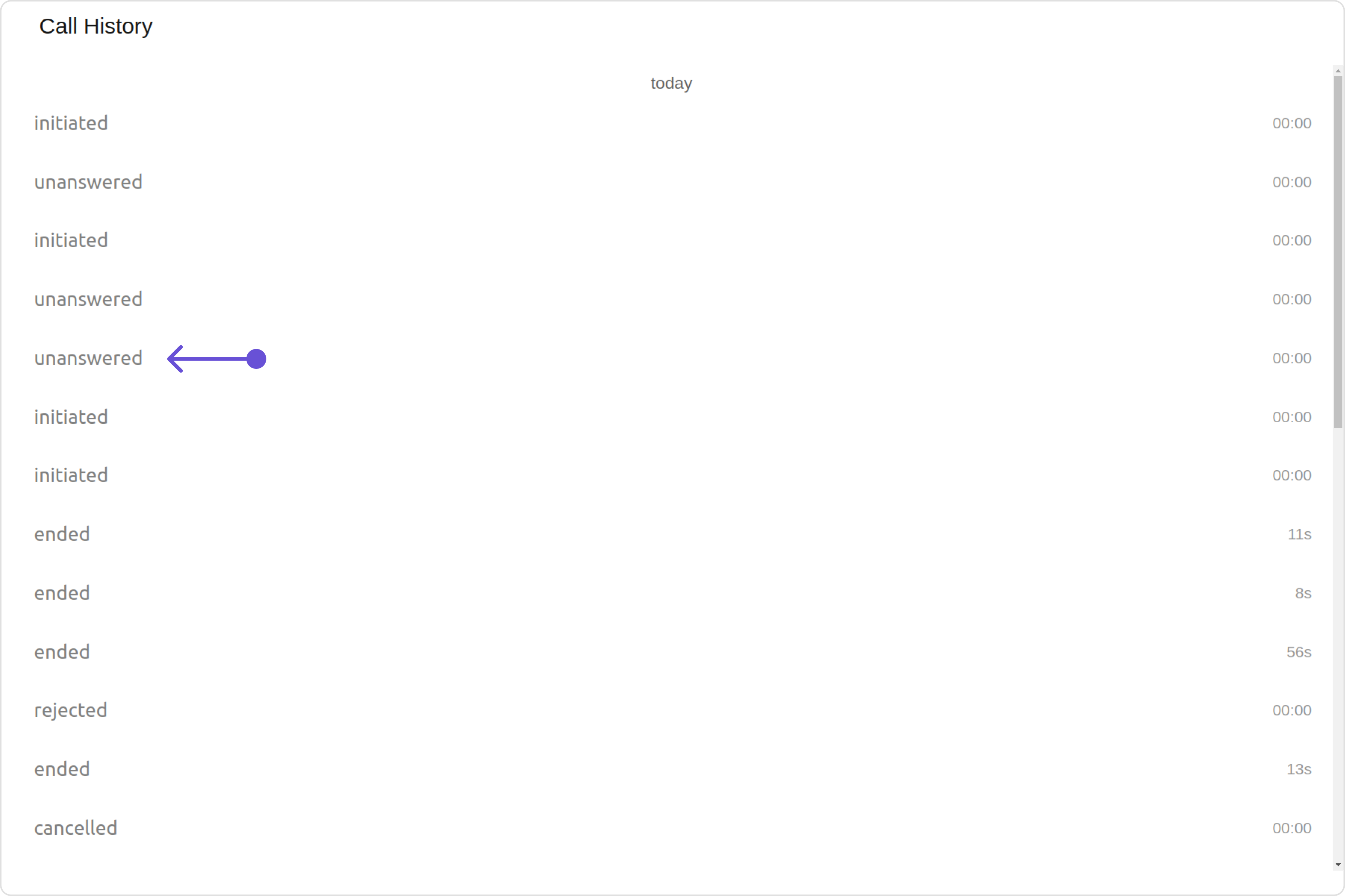 | setCallStatus | callStatus | Sets the status of calls to fetch (initiated, ongoing, etc.) |