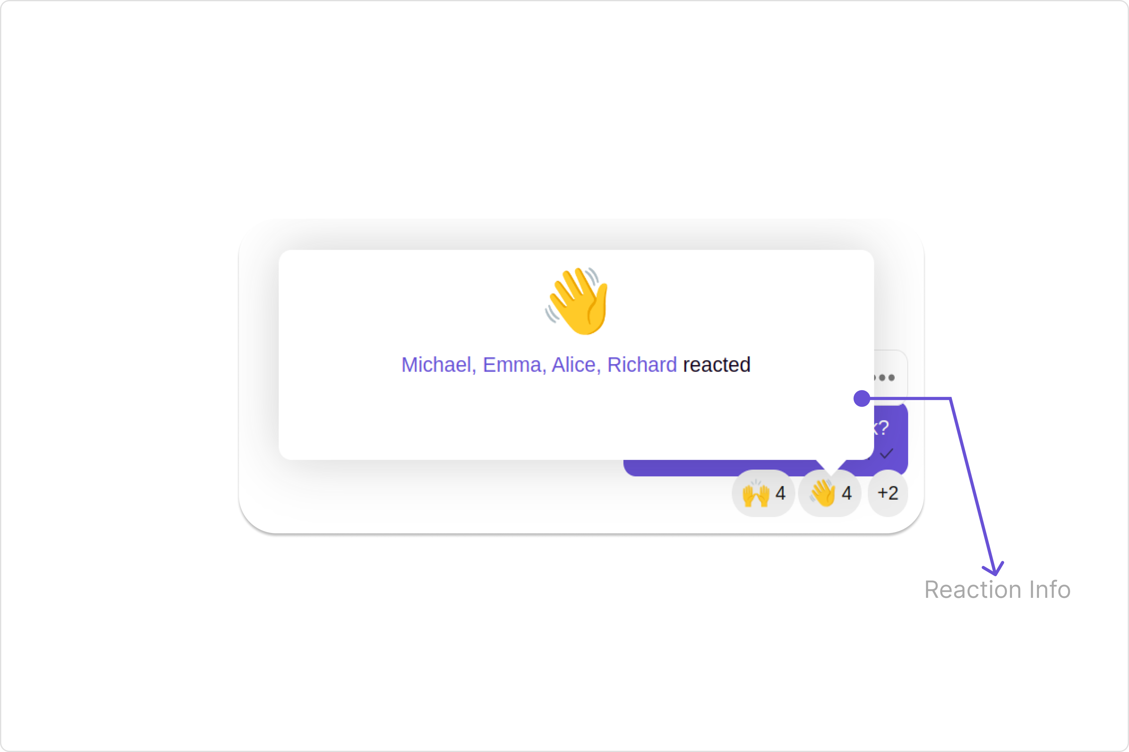 | hoverDebounceTime report | Used to sets the delay before displaying the tooltip reaction information when hovering over reactions | hoverDebounceTime={100} |